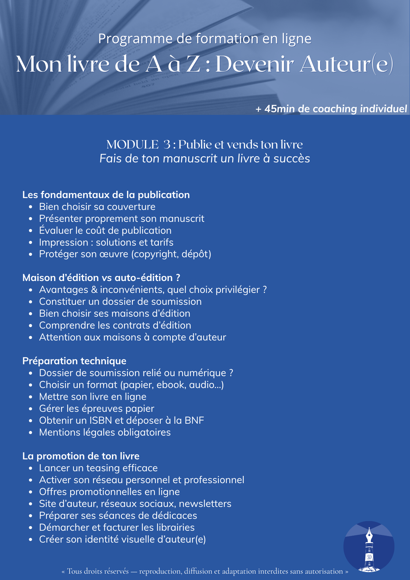 Cette formation « Mon livre de A à Z » est faite pour toi !